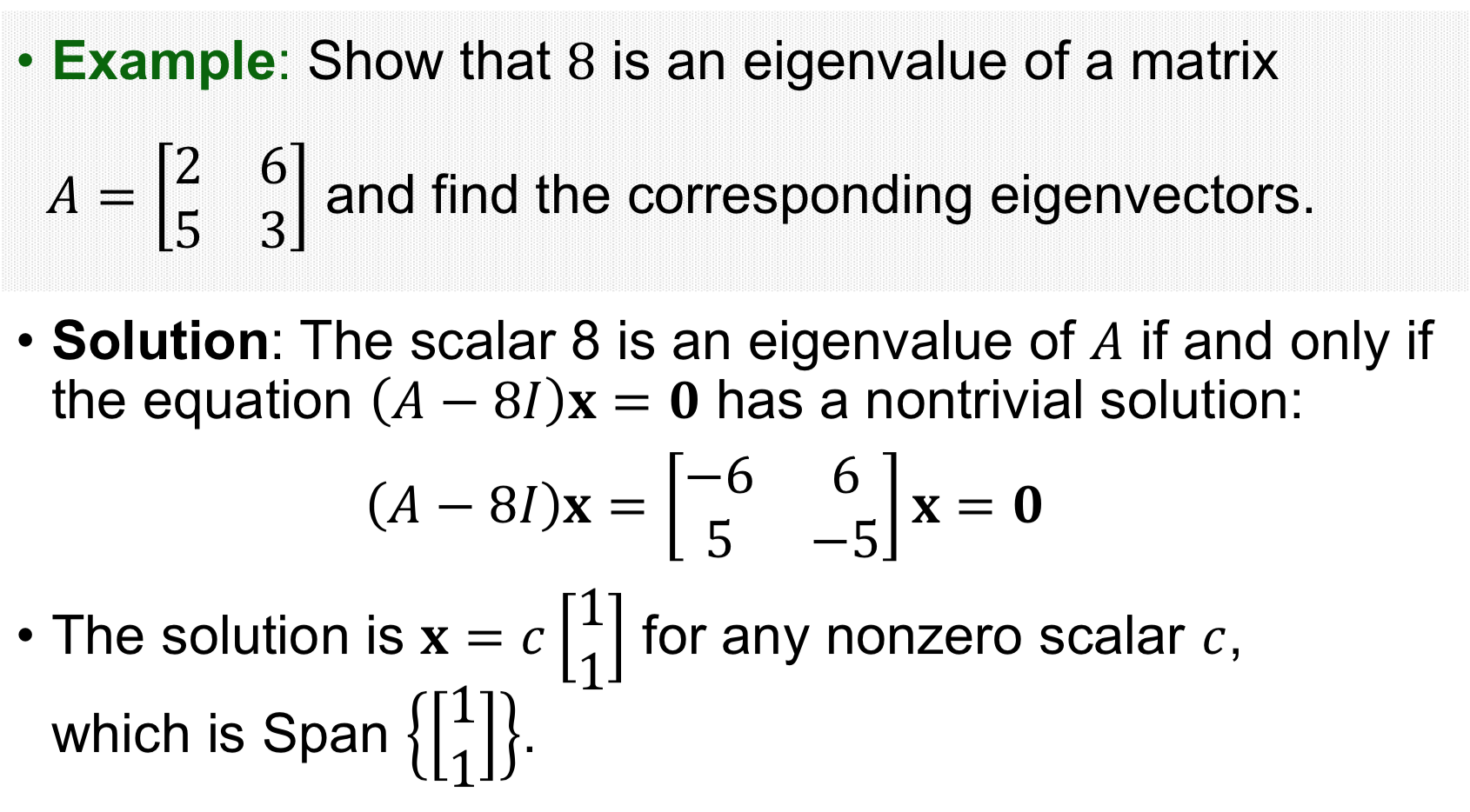 (𝐴−8𝐼)𝐱 = 𝟎(null space)를 만족하는 𝐱를 eigenspace라고 한다.
