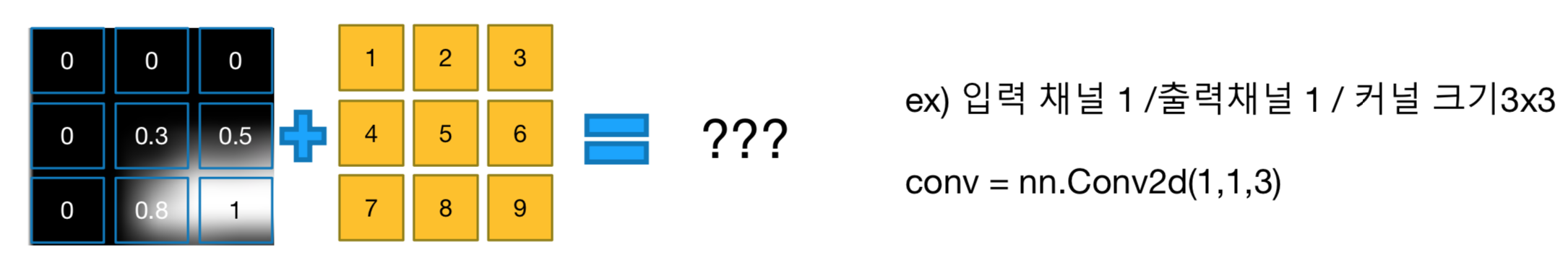 - padding: input의 크기 만큼 이미지의 상하좌우에 '0'으로 된 pad가 둘러지게 됨