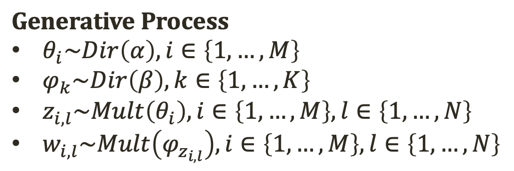 - φ 단어-토픽 디스트리뷰션 : 개별 단어들이 얼마나 자주 쓰이는지에 대한 사전 지식에서 나옴